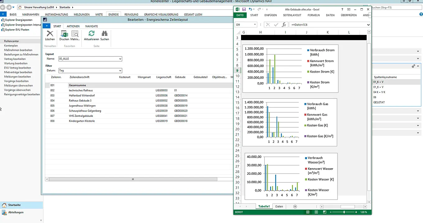 Illustrates potential energy savings and resulting measures. This supports the overall building and facility energy management process, and creates a framework for reducing or optimizing costs and energy consumption. Assessments of key performance indicators on energy consumption and costs from comparable buildings serve as an aid, as do municipal energy reports that can be created at the push of a button. The module provides all the up-to-date information you need, monitors energy consumption, energy purchasing, and energy costs.