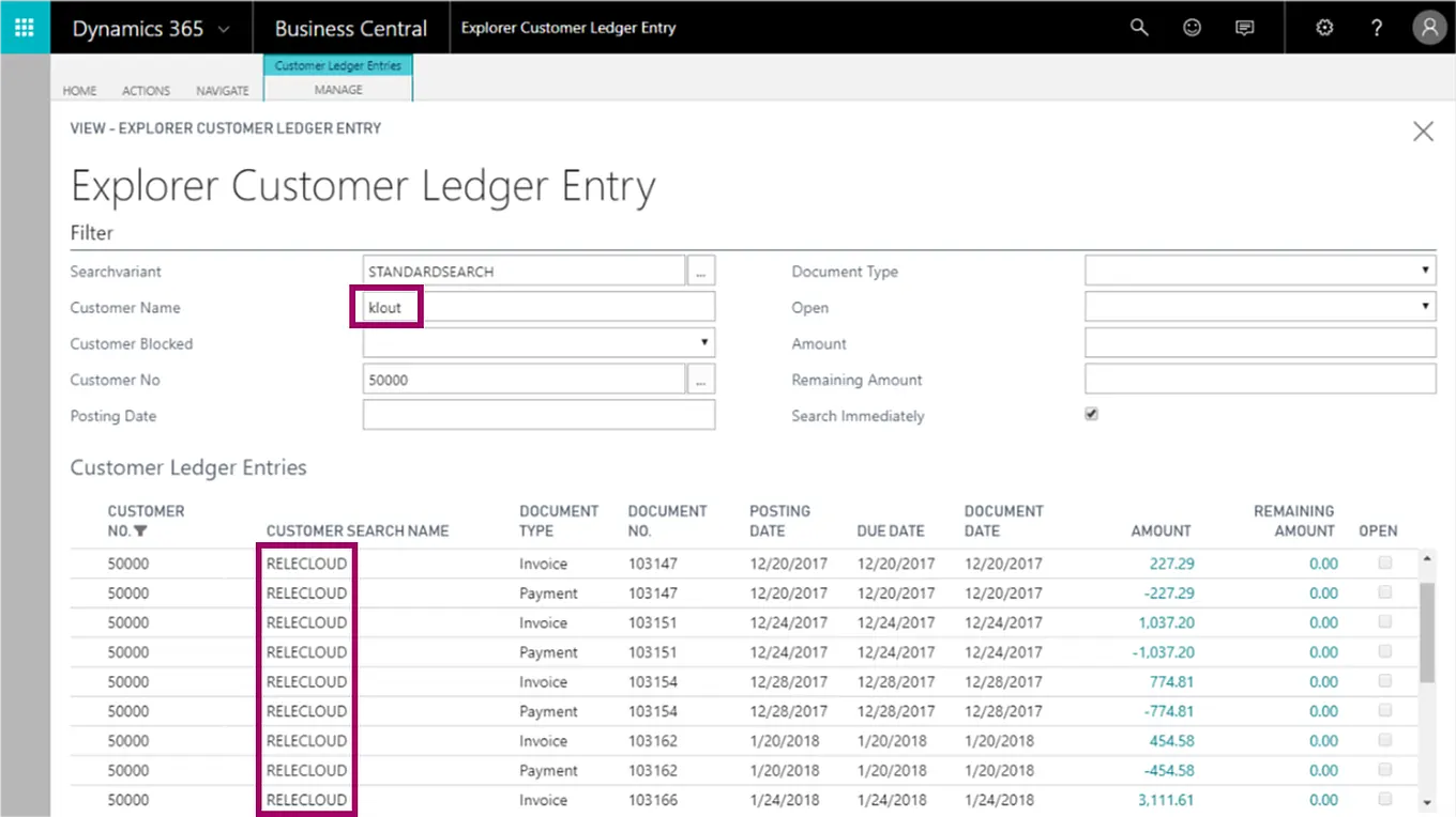 The entry search and find App for Microsoft Dynamics 365 Business Central