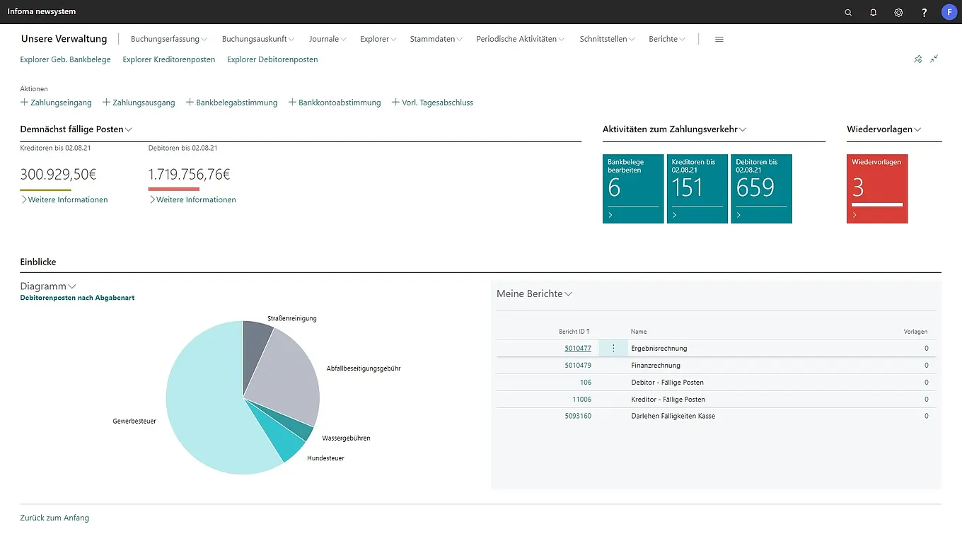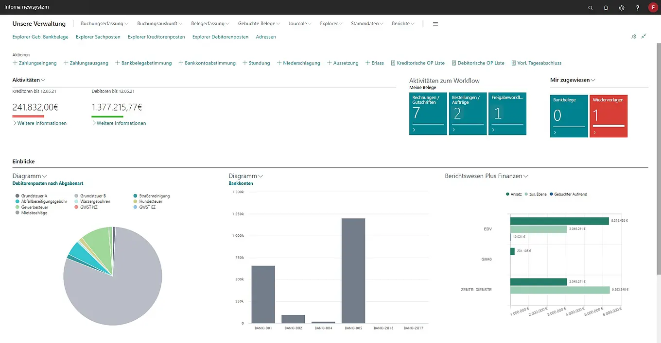 As a hub for all finance-related data and processes, the solution seamlessly integrates applications beyond finance—e.g., specialist procedures for property and building management or municipal operations. You can rely on certified software with intuitive operation and needs-based functionalities.