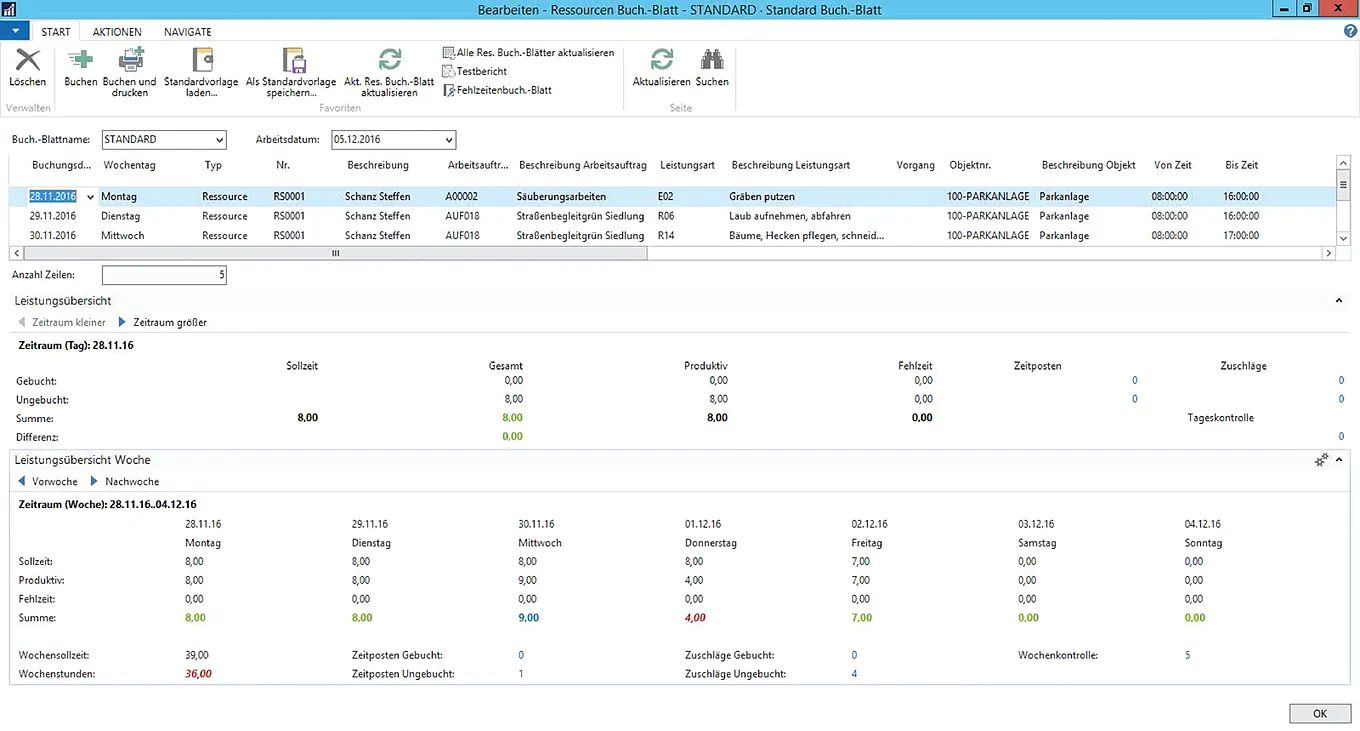 Records all performance data for employees, vehicles, and machines, and allocates the materials needed to fulfill the order. Cost developments are traceable, and resource consumption can be controlled. Report documents are recorded in a line oriented, customizable input screen with automatic integration into order management and cost and results accounting.